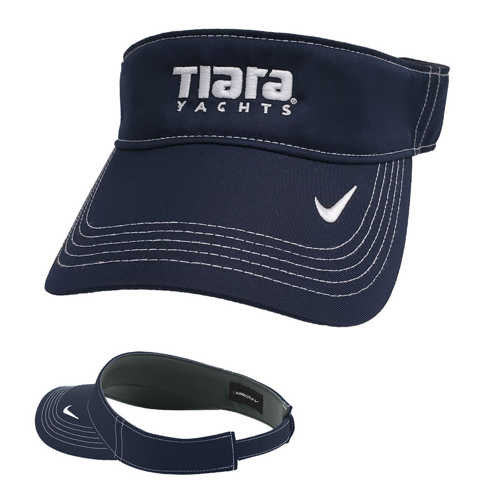 A high-performance, three-panel visor built with Dri-FIT moisture management technology. Contrast stitching adds interest, while the hook and loop closure ensures a custom fit. The contrast Swoosh design trademark is embroidered on the bill. Front panel measures approximately 1.875 h x 10 w. Made of 100% Dri-FIT polyester twill.
